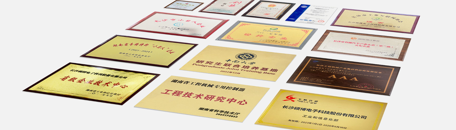 碩博電子致力于發(fā)展與創(chuàng)新,不斷超越自我,先后榮獲“湖南省科學(xué)技術(shù)進(jìn)步獎”、“長沙市創(chuàng)業(yè)新星”、“第四屆中國創(chuàng)新創(chuàng)業(yè)大賽優(yōu)秀企業(yè)獎”、“長沙高新區(qū)2017年度瞪羚企業(yè)”、“湖南省質(zhì)量標(biāo)桿企業(yè)”、“湖南省綠色工廠”等榮譽,先后獲批“湖南省省級企業(yè)技術(shù)中心”、“國家專精特新小巨人企業(yè)”、“湖南省工程機(jī)械專用控制器工程技術(shù)研究中心”、“長沙市企業(yè)技術(shù)中心”、“長沙市技術(shù)創(chuàng)新中心”、“高級工程師工作室”等。